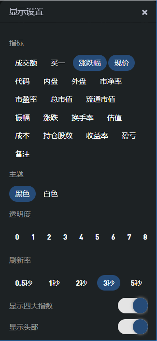 可自定义显示指标,其中包括对个股设置后的收益率备注等。